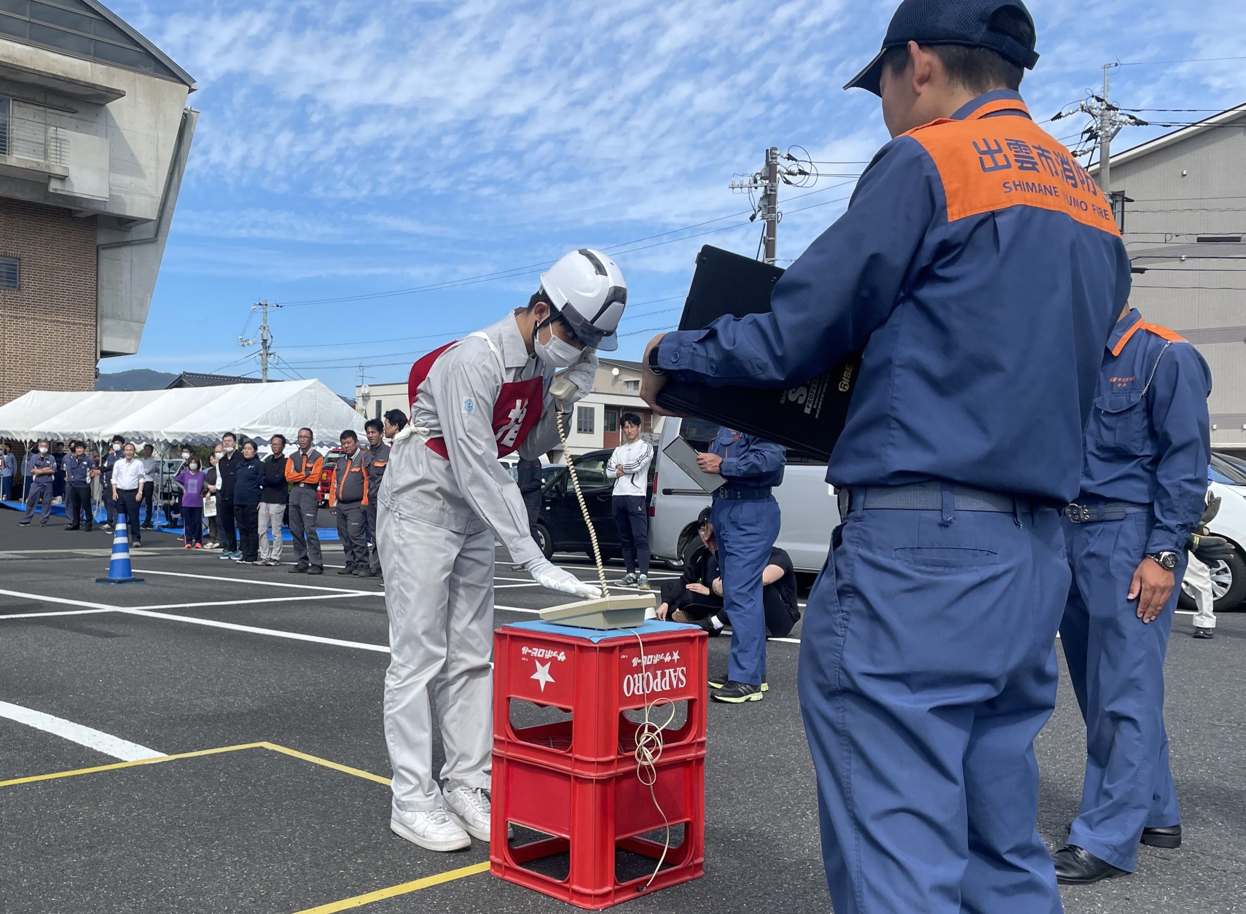 出雲市防災安全協会加入事業所を中心に、消火器の操作技術を競うもので、